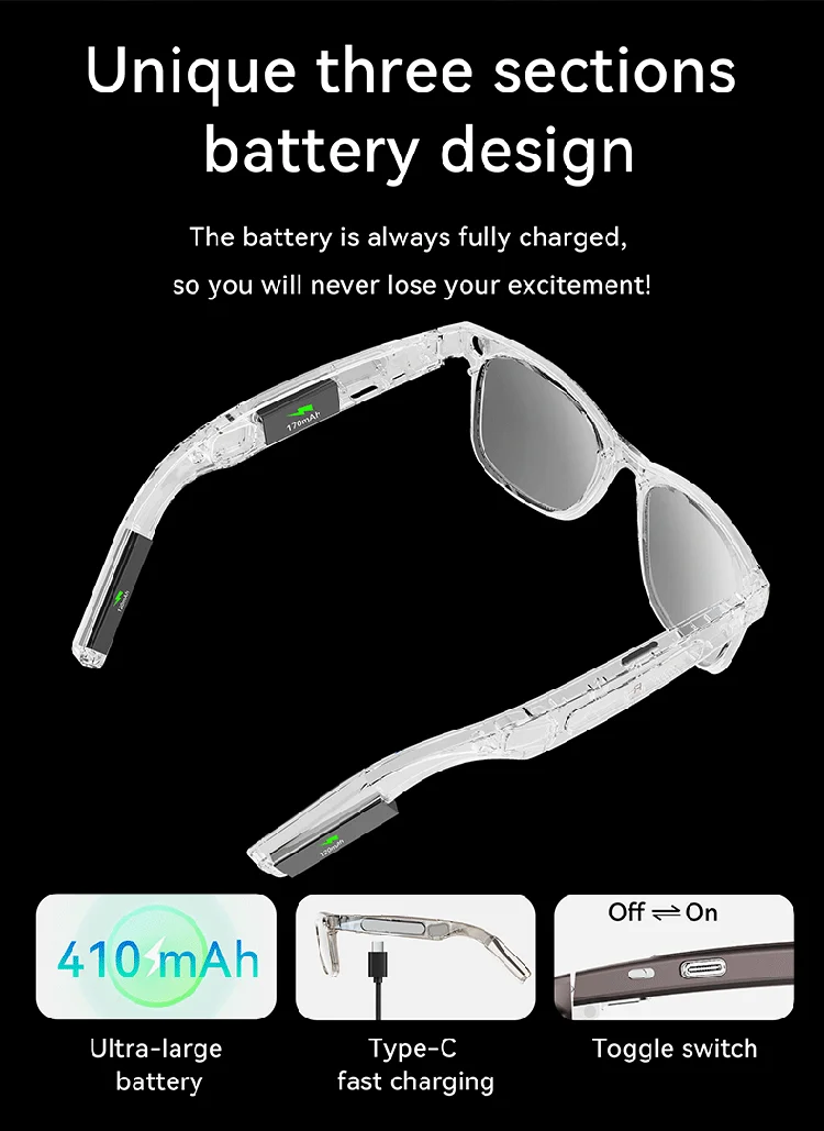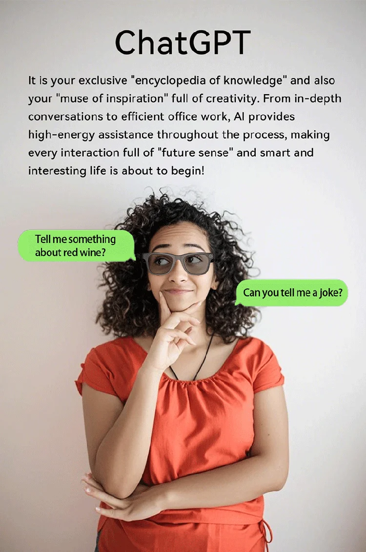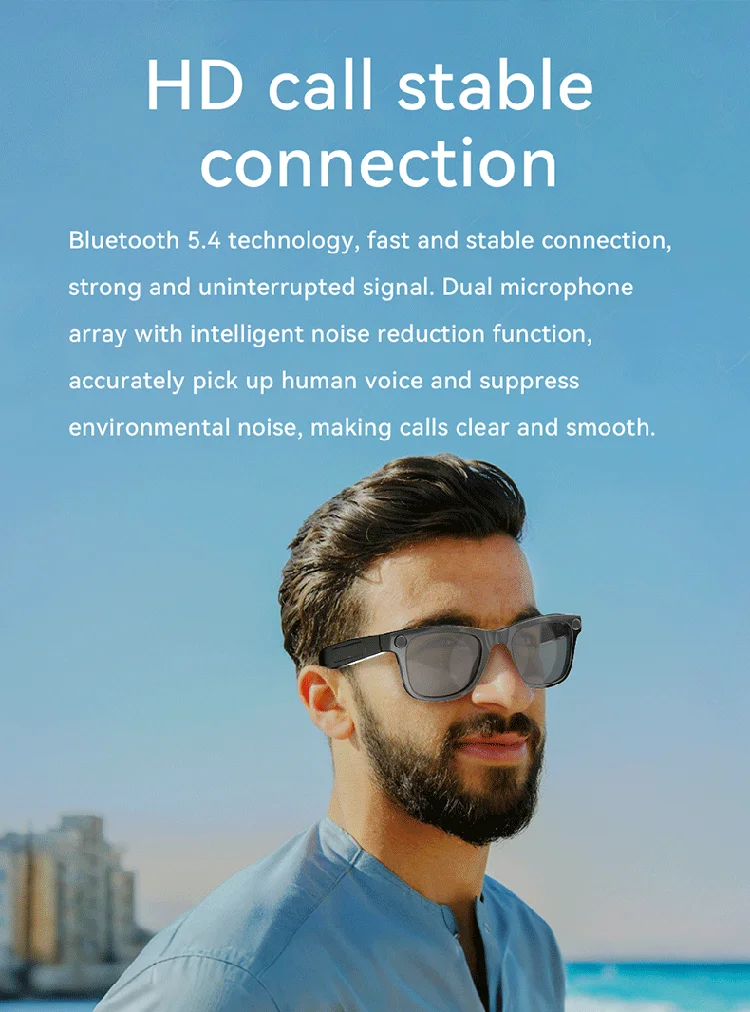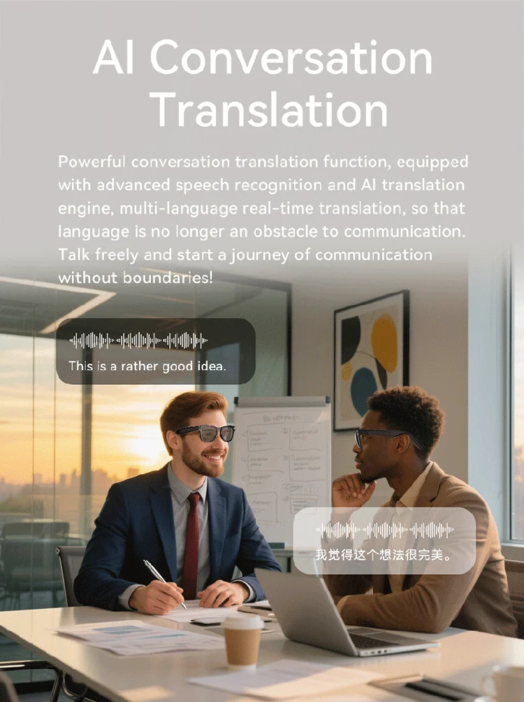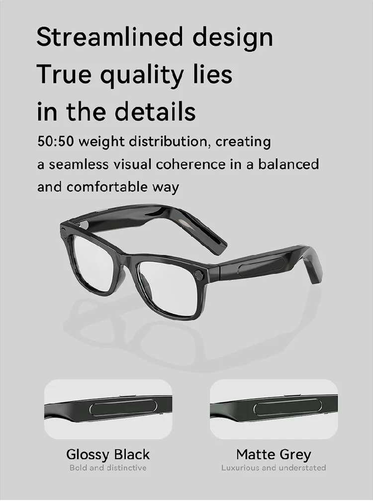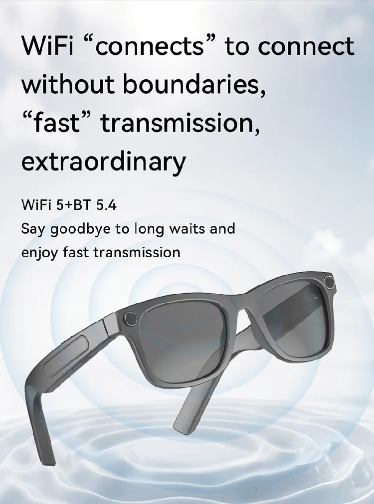 Customized AI Translation Audio Eyewear Smart Camera Glasses with Wireless Voice Assistant HD Video Music